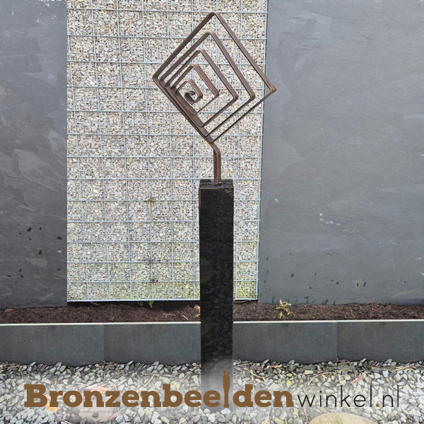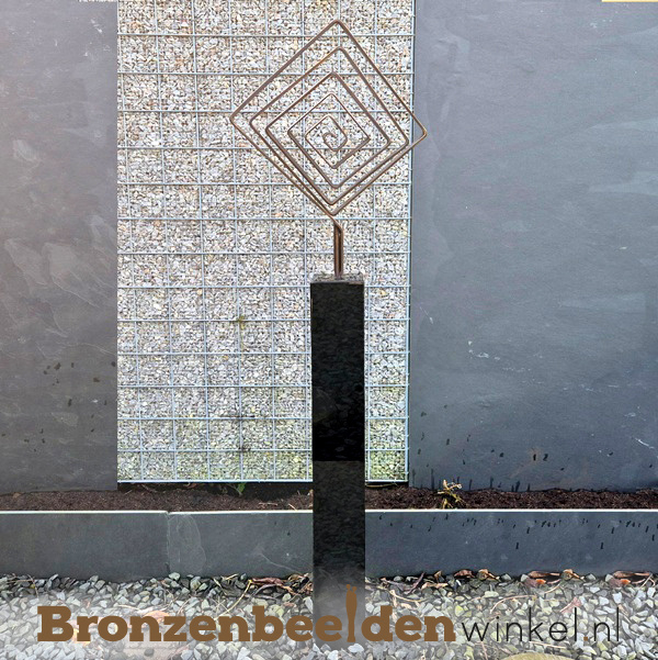 Abstract tuinbeeld "Labyrint" op zwart granieten sokkel BBW58362br