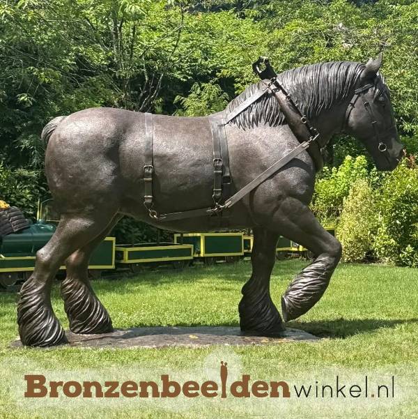 Een paard beeld in brons gegoten. Dit trekpaard heeft een fantastische afwerking.
